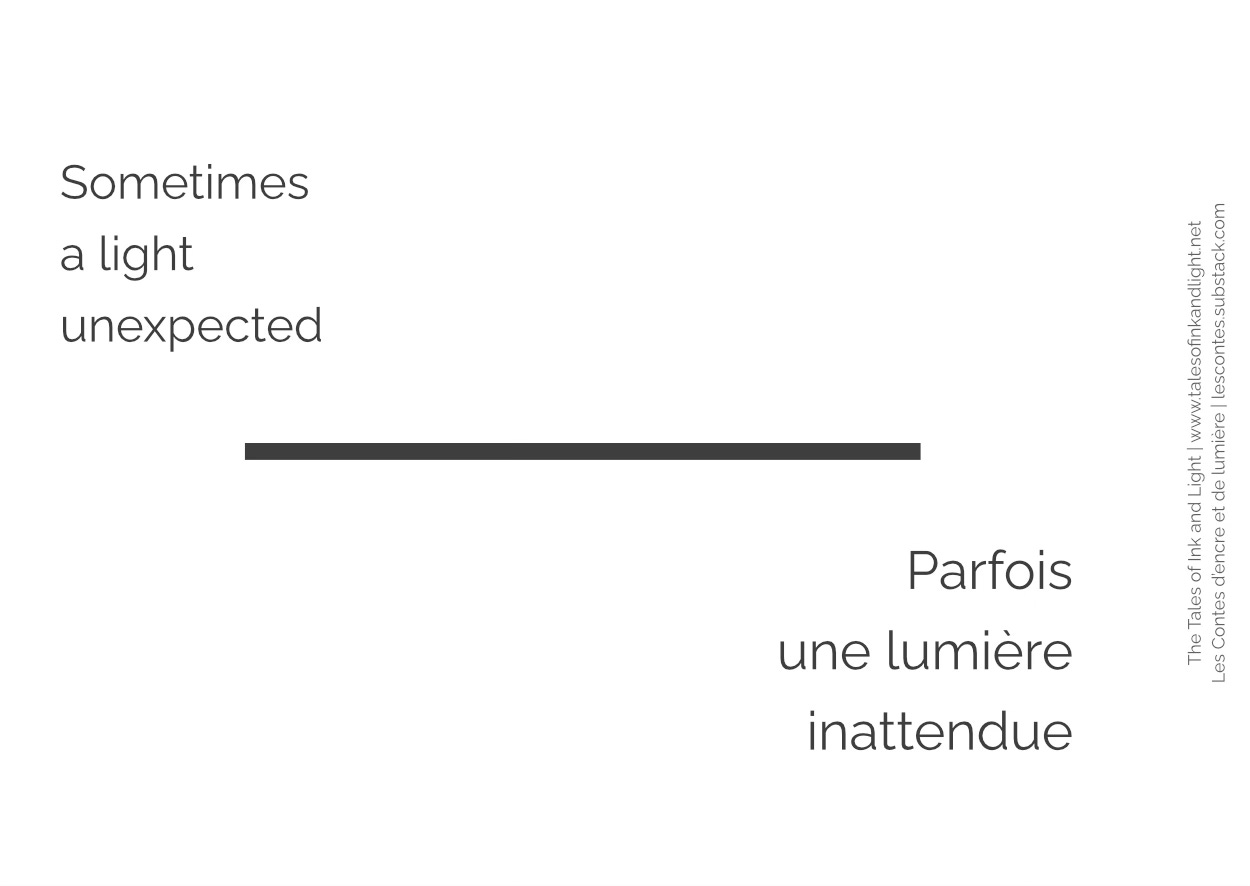 The Tales of Ink and Light are a collection of poems, short stories (fiction or documentary) or essays that explore the strange beauty of our world. Les Contes d’encre et de lumière is the French version of the Tales of Ink and Light.